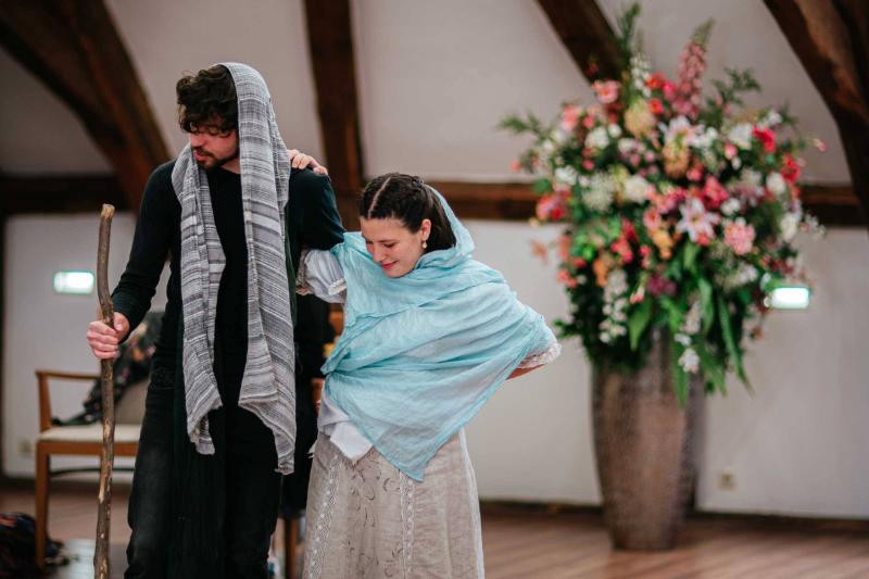A mostani premier Toldi Ildikónak köszönhető, aki évekkel ezelőtt drámapedagógusként többekkel együtt megalapított Pécsett egy színházi nevelési egyesületet, a Keret Alkotó Csoportot. Khaled-Abdo Szaida tollából megszületett a forgatókönyv, Ildikó pedig összetoborozta a színészeket, hozott koreográfust, rendezőasszisztenst is. Mindehhez a Pécsi Egyházmegyétől és a NEK Titkárságától kapott támogatást. „A Keret Alkotó Csoport kifejezetten hátrányos helyzetűekkel, akadállyal élőkkel (látássérültekkel, értelmükben akadályozottakkal) működtet fejlesztő színházat. Tulajdonképpen ez egy kistérségi művészeti misszió” – fogalmaz Beáta nővér.