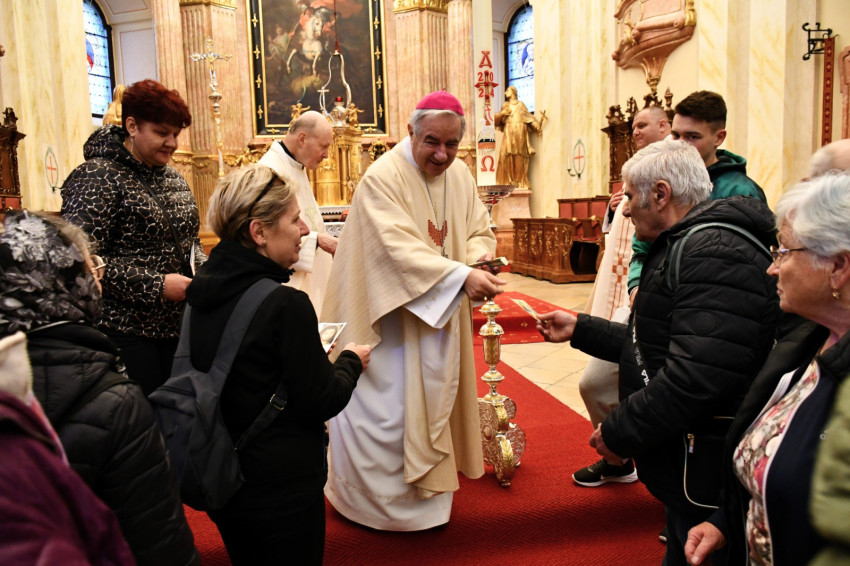 A szentmise végén a főpásztor egy-egy szentképet adott a Međugorjéba induló zarándokoknak.
