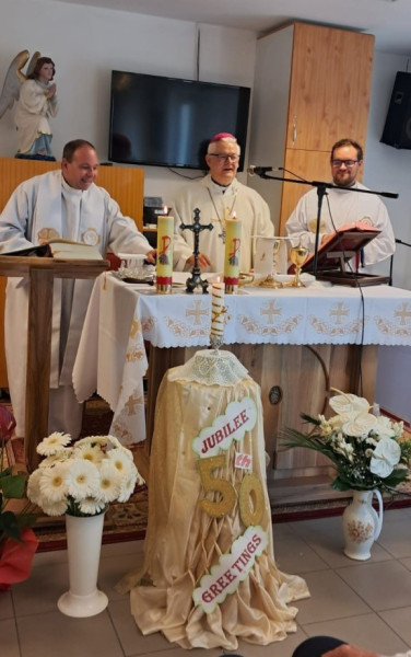A szentmise végén köszöntötte a szerzetesrend magyarországi vezetőjét, Annie Manjaly nővért örökfogadalmának 50. évfordulója alkalmából. Az alkalmon jelen volt a szerzetesrend legfőbb elöljárója és annak helyettese is.