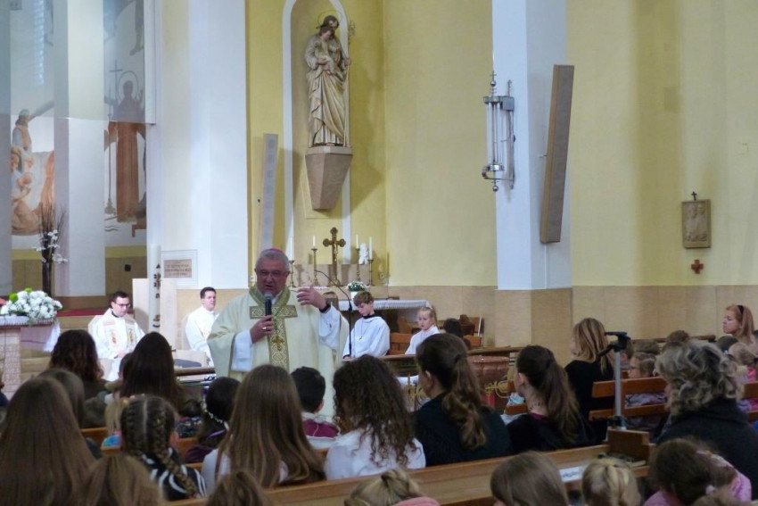 A Szent Imre-nap fénypontja a Veres András győri megyéspüspök által celebrált szentmise volt a komáromi Jézus Szíve-templomban. A gyerekekhez szóló prédikációjában arra hívta fel a figyelmet, hogy mindenkiből lehet szent, még ilyen fiatalon is, mint a jelen lévő tanulók.