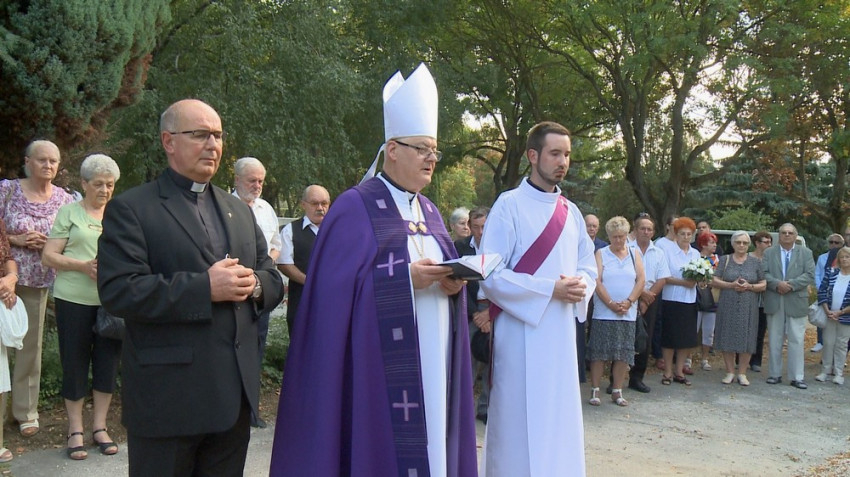 A szentmise előtt Spányi Antal püspök a Béla úti temetőben megáldotta Kiss János helynök, nagyprépost, korábbi plébános nemrégiben elkészült síremlékét.