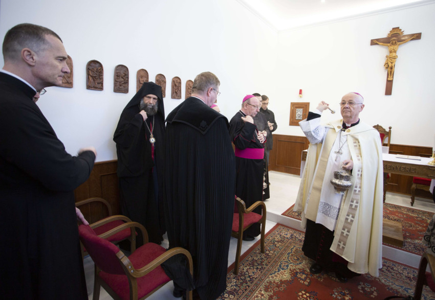 Ternyák Csaba egri érsek végül a püspöki székház kápolnájában mondott áldást meghintve szenteltvízzel az épület falait.
