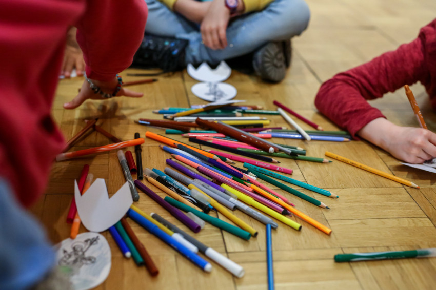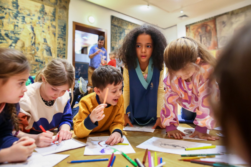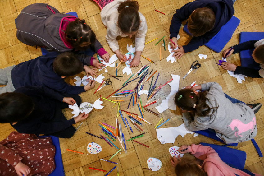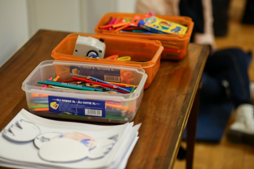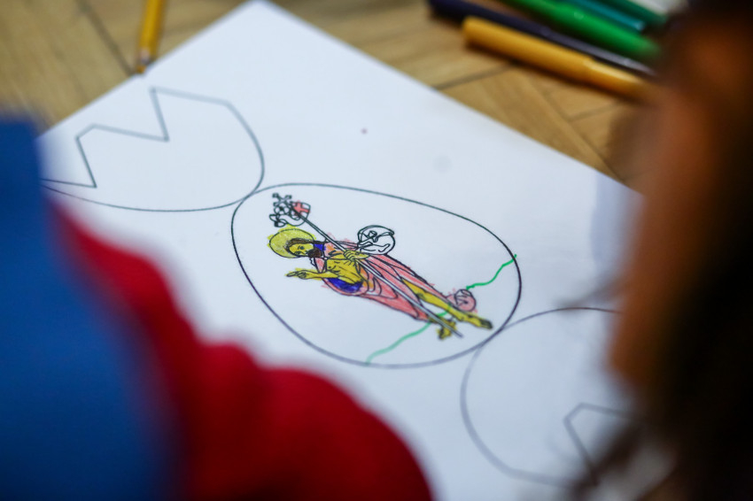 Szinte minden foglalkozás végén van valami kreatív feladat. „Az egyik alkalommal például egy középkori módszert ismerünk meg a gyakorlatban: táblaképre festünk tojástemperával, amit mindenki maga kever ki egy kis kagylóban pigmentporból, tojássárgájából és vízből. Ki lehet próbálni az aranyozást is, ebben egy restaurátor kolléga segít.” A Hős lovagok és elbűvölő hercegnők program végén a fiúk saját címert, a lányok tiarát készítenek, lényegében egy saját attribútumot. „Ezt a programot továbbfejlesztettem csapatépítő, önismereti alkalommá, amit az elsős, az ötödikes és a kilencedikes osztályoknak ajánlok. Az attribútum megalkotásán túl arra a kérdésre is választ keresünk, hogy vajon ki mi lenne, ha tárgy, szín vagy állat volna. A gyerekek ezen a foglalkozáson nemcsak azt tudják meg, hogy miért kötődik Szent Péterhez a kulcs, Szent Pálhoz a kard, és miért van három aranypénz Szent Miklósnál, hanem közben önmagukon is elgondolkodhatnak. A feketeleves akkor jön, amikor a diákokról egy-egy osztálytársuk is elmondja, ő mit gondol róla, szerinte milyen tárgy, szín vagy állat illik hozzá. A foglalkozás végén aztán mindenki készít magának egy címert ezekkel a kiválasztott elemekkel.”