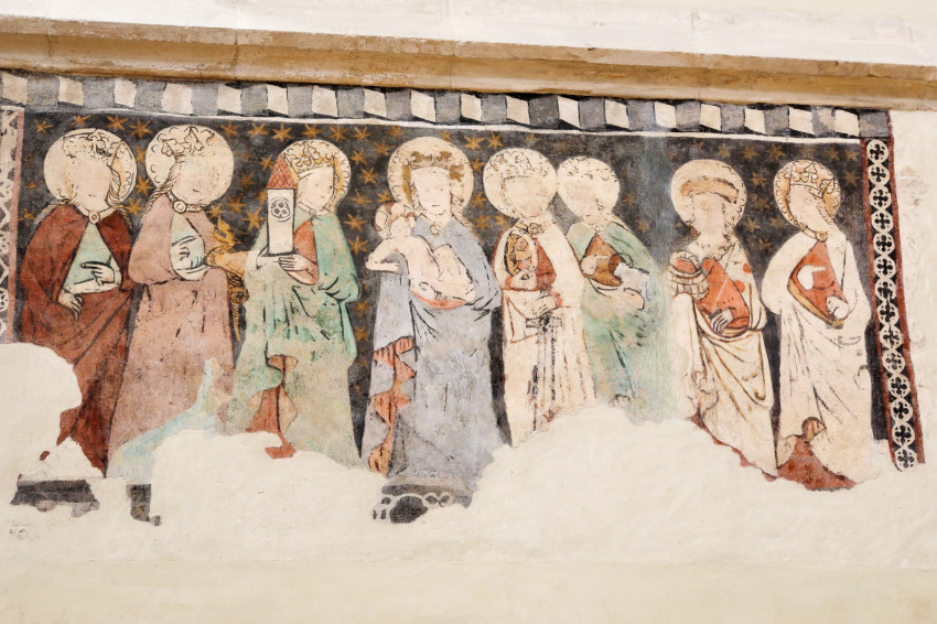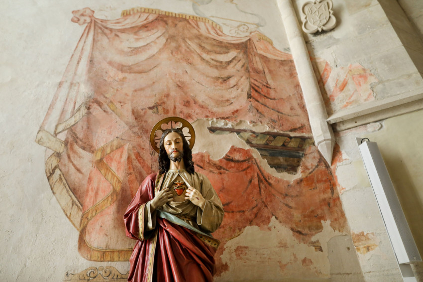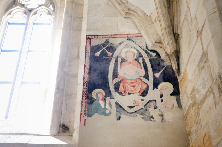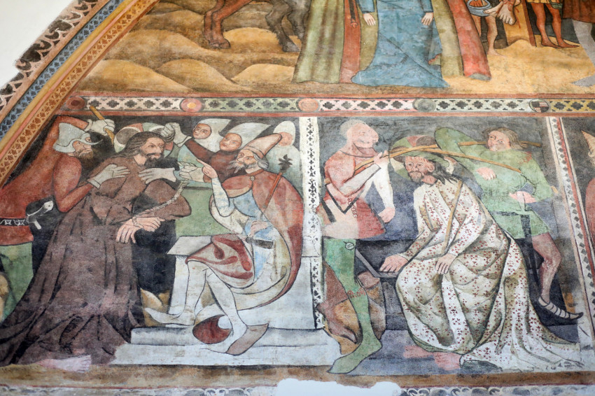 A kápolnában található, Jézus szenvedéstörténetét és az ítélkező Krisztust ábrázoló középkori freskó is eredeti színeiben pompázik.
