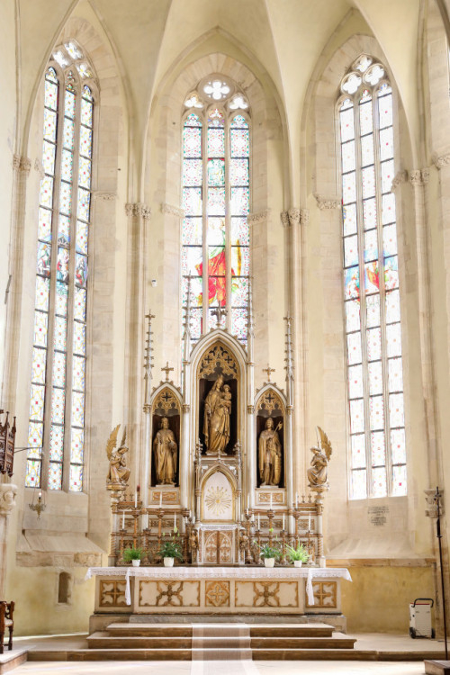 A templomtérbe megérkezve az első élmény az ámulaté. Szó szerint nem jutok szóhoz, hiszen a templom egésze, gótikus boltívestől, csak úgy ragyog. A sötétség, a szürkeség már a múlté, és pillanatok alatt egy láthatatlan erő emeli magasba a lelkemet.