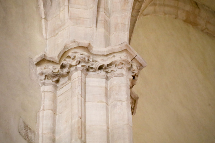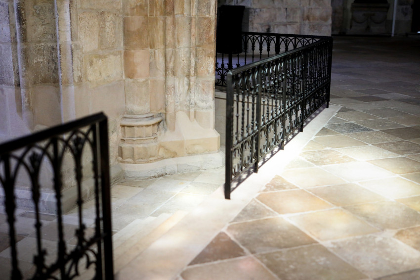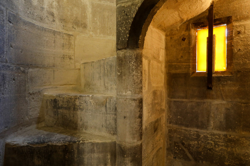 Az a döntés született, hogy lépcsőket helyeznek el itt, amelyek levezetnek a kápolnához. Így a templom eredeti járószintjén is járhatunk, illetve megcsodálhatjuk a gondos kezek által helyreállított korábbi pillérek díszes lábazatát. A kápolna falainak vastagságából arra lehet következtetni, hogy annak idején itt tornyot szerettek volna építeni, ami azonban sosem készült el.