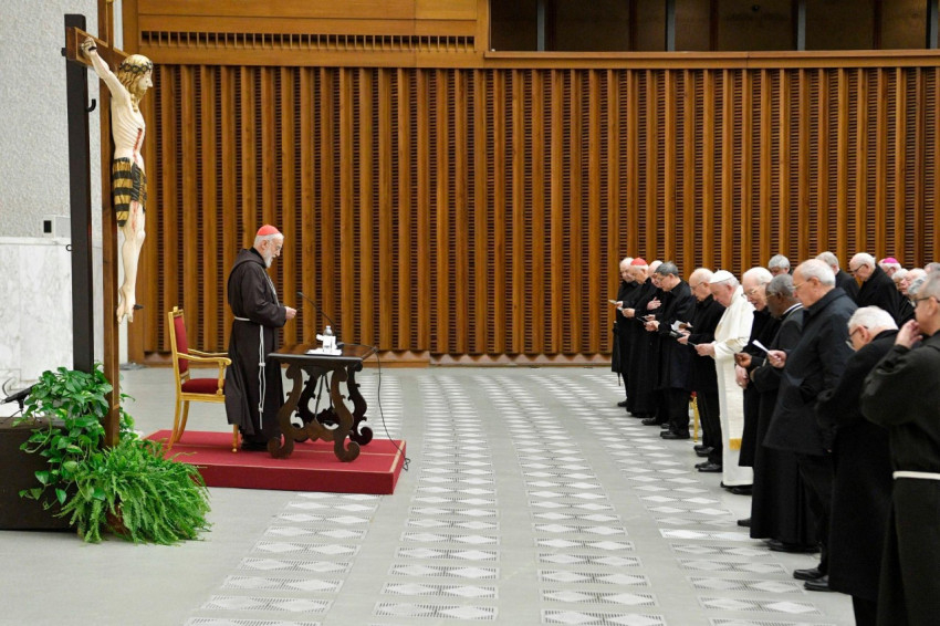 Cantalamessa bíboros második nagyböjti tanítása első részében az evangelizálás küldetését elemezte. Pál apostol korát a jelen körülményekkel összehasonlítva megállapította, hogy napjaink hitetlensége nem annyira Isten tagadásában áll, hanem hogy úgy élünk, „mintha nem lenne Isten”. Éppen ezért hasznos a római levél első három fejezetének újraolvasása, melynek végén az apostol leszögezi: „Megigazulásunkat ingyen kapjuk, Isten kegyelmének erejéből, Jézus Krisztus megváltása árán.” (Róm 3,24) A II. Vatikáni Zsinat óta a pápák tanításának középpontjába került az evangelizáció, ennek jele Szent VI. Pál pápa Evangelii nuntiandi kezdetű apostoli buzdítása, Szent II. János Pál nagy enciklikái, miként a XVI. Benedek által létrehozott Evangelizáció Pápai Tanácsa, végül pedig Ferenc pápa Praedicate evangelium kezdetű konstitúciója a Római Kúria megreformálására is.