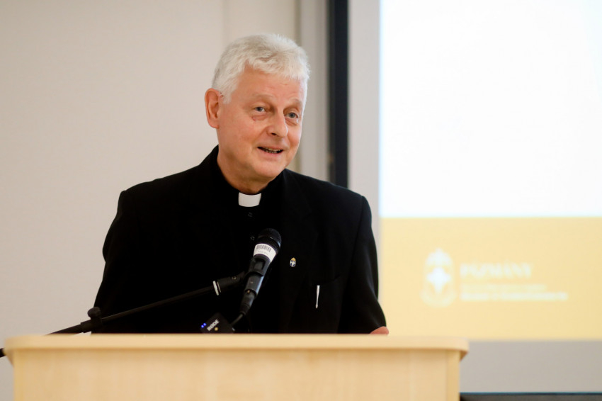Kuminetz Géza, a PPKE rektora elmélkedésében kiemelte: különösen ügyelnünk kell az értékrendünkre, vallásunkra, hiszen a vallásból kapunk ihletet igaz szóra, tettre, bölcs életvezetésre. Miért is a vallás az alfa és az omega, minden más értékrendünk forrása? – tette fel a kérdést. Azért, mert benne képeződik le önmagunkhoz, egymáshoz, a világhoz, és az Istenhez való viszonyunk. E viszonyokat igazságok, tanítások, misztériumok és az ezeket ábrázoló szimbólumok őrzik, adják hírül. Olykor ez a legegzaktabb közlés, csak szem kell hozzá, fül és élettapasztalat. Ezért a vallások a művészetek nagy ihletői, és talán maga a művészet is a vallásos érzületnek köszönheti létét – fűzte hozzá a rektor.