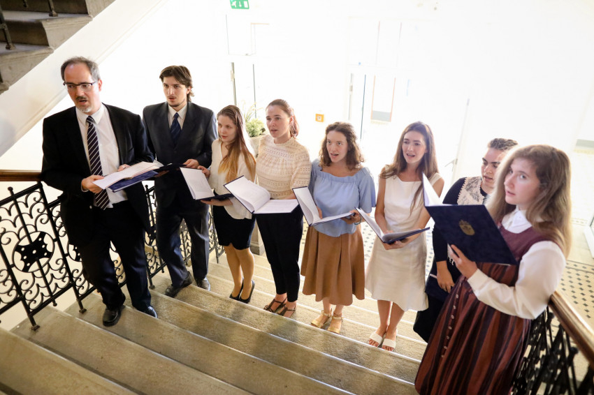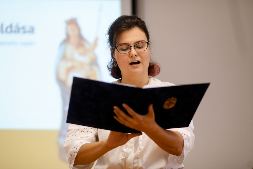 Az ünnepi rendezvényen Medgyesy-Schmikli Norbert tanszékvezető és az általa vezetett szkóla a magyar néphagyományból származó Mária-énekeket énekelt.