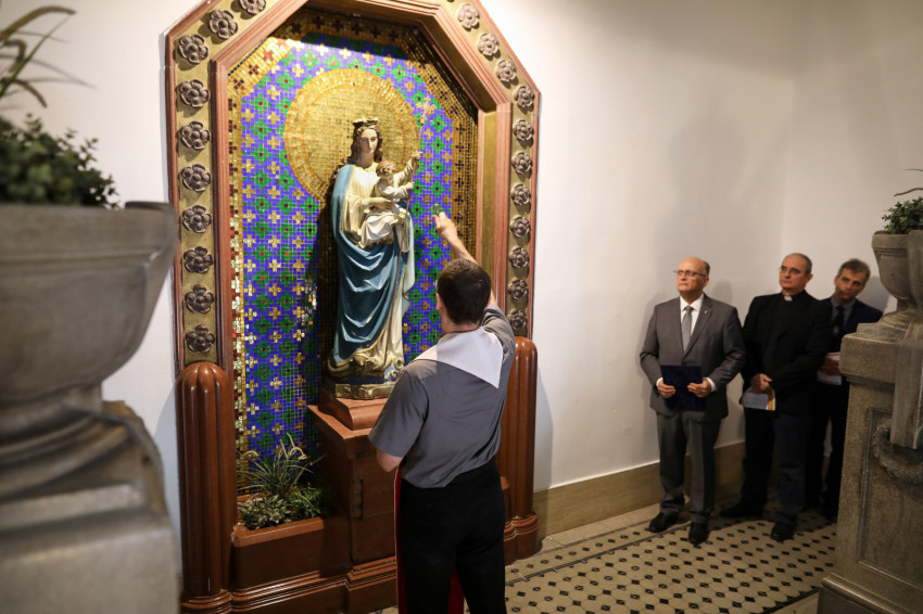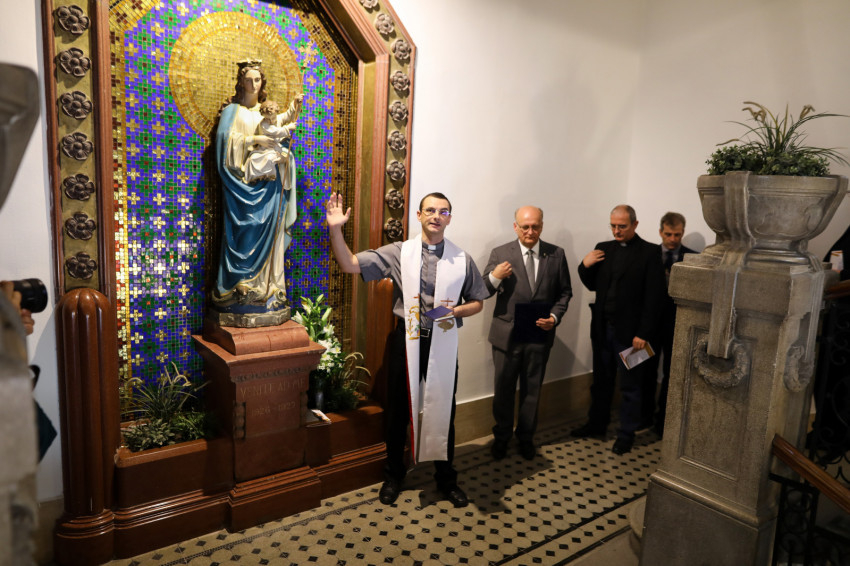 Az ünnepség csúcspontjaként Caprioli Alessandro egyetemi lelkész megáldotta a Mária-szobrot, amely a földszint és első emelet lépcsőfordulójánál lévő fülkében helyezkedik el a Sophianum lépcsőházában.