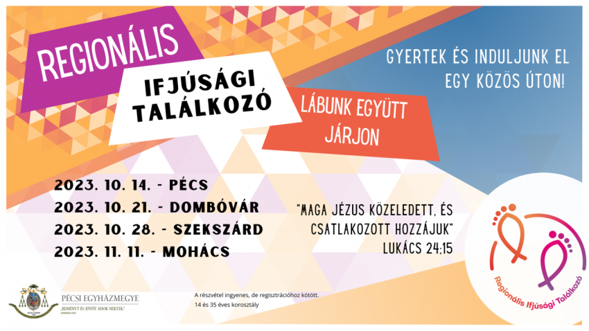 Az egyes találkozókat félévente, ősszel és tavasszal rendezik meg. Pécsett a Szent Mór Iskolaközpont ad helyet az első találkozónak október 14-én, majd Dombóváron október 21-én, Szekszárdon október 28-án és Mohácson november 11-én találkoznak a fiatalok az őszi Regionális Ifjúsági Találkozón.
