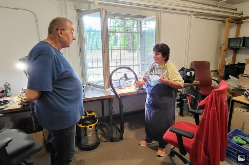László József igazi régi vágású ezermester, otthonosan mozog a Máltai Szeretetszolgálat gépszagú kis pécsi műhelyében a csiszológép, a satupad és a rengeteg kéziszerszám között. A férfi szakmájára nézve géplakatos, de most ékszerkészítéssel foglalkozik: hatalmas kezében szinte eltűnnek a pici, szív alakú medálok.