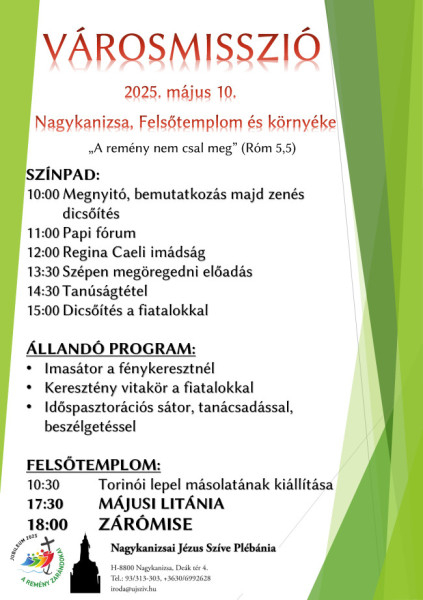 10.00 megnyitó, bemutatkozás, majd zenés dicsőítő imádság