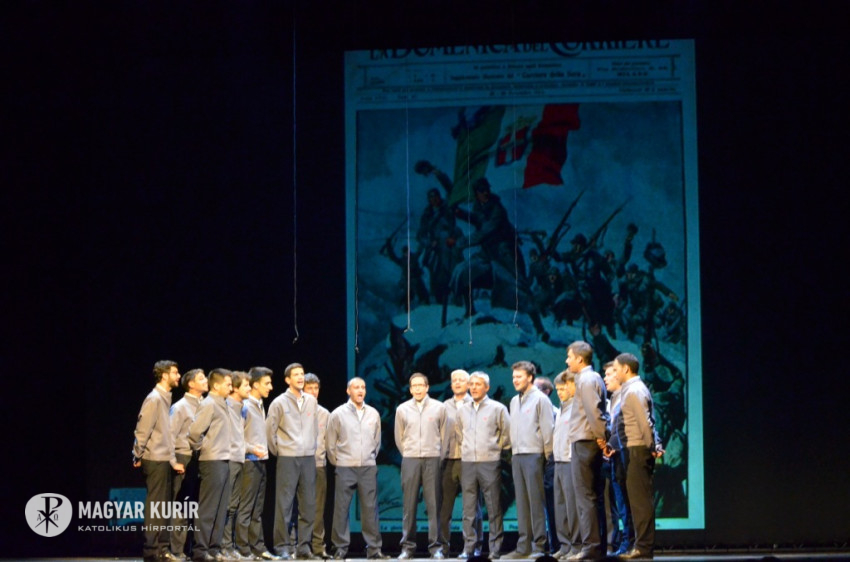 „Egy szív, amely nagyobb, mint a háború” címmel, a Nagy Háború katonadalaiból adott elő a Comunione e Liberazione (CL) 2000-ben alakult férfikara szombat este. A dalok között idézetek hangzottak el, amelyek segítettek megérteni a harcok szünetében is énekelni tudó katonákat, szívüket, amelyet átjárt a hiány, de mégis telve volt reménnyel.