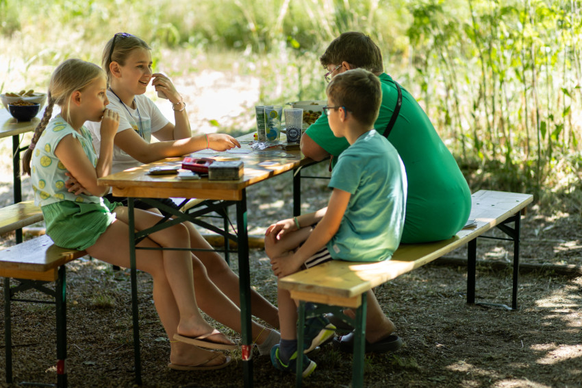 Somogyvári Fanni, az önkéntes koordinátorok vezetője elmondta, hogy az idei téma a hit, a szeretet, a remény volt, ebben a sorrendben, a kiscsoportos beszélgetések is erre épültek. A tábor különleges alkalma az utolsó napon a „színes est”, amelyre lehet énekkel, tánccal, verssel készülni, csoportokban és egyénileg is. Idén is sok nevetés, nagy táncolás kísérte az alkalmat. Az egyik csoport különleges dologgal készült, gyertyákat hoztak, amelyeket tovább lehetett adni, és közben elmondani, miért hálás valaki a másiknak. Sorban adták egymásnak a sötét kápolnában a világító gyertyákat, nagyon megható volt – mesélte. Kiemelte, hogy a helyi közösséget régóta igyekeznek bevonni, az egyik ebédet a reformátusok főzik, és idén a helyi lelkész istentiszteletet is tartott. Szalai Ferenc győri régióvezető is eljött, nyakba akasztható angyalkákat készítettek vele. Karkötők is készültek, hogy az itt töltött napokra emlékeztessenek mindenkit.
