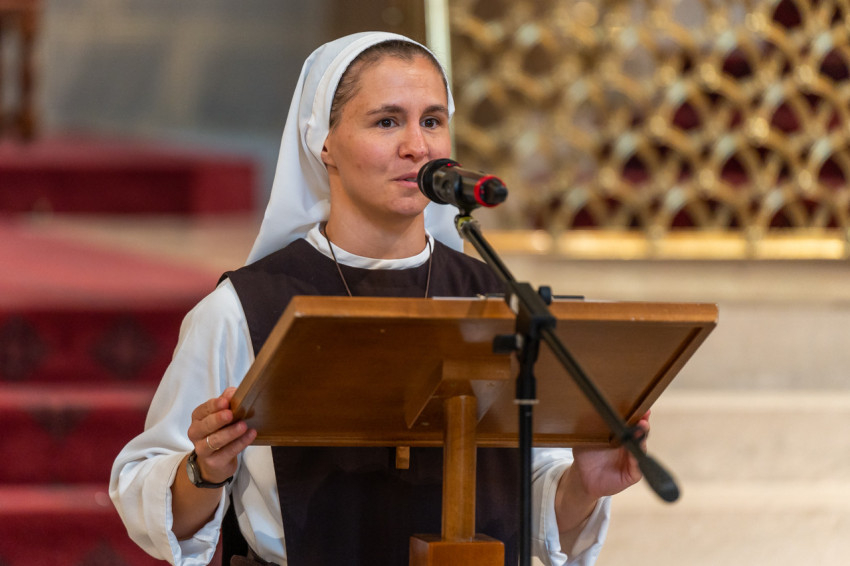Ezt követően Csaba Veronika Mária, a Nyolc Boldogság Közösség homokkomáromi rendházából érkezett nővér élményszerű tanítását hallhatták a jelenlevők Kis Szent Teréz életéről és lelkiségéről a naplójából vett idézetekkel kiegészítve.