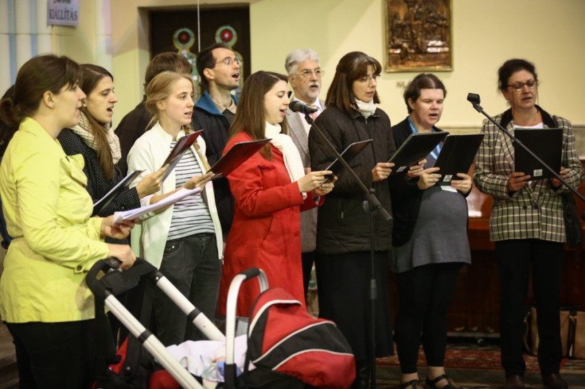 Mohos Gábor elmélkedését követően Maczkó Mária énekesnő népi Mária-dalokat adott elő, majd tanúságtételek hangzottak el a rózsafüzér lelkeket átalakító, megnyugtató és reményt adó erejéről.