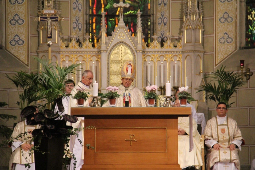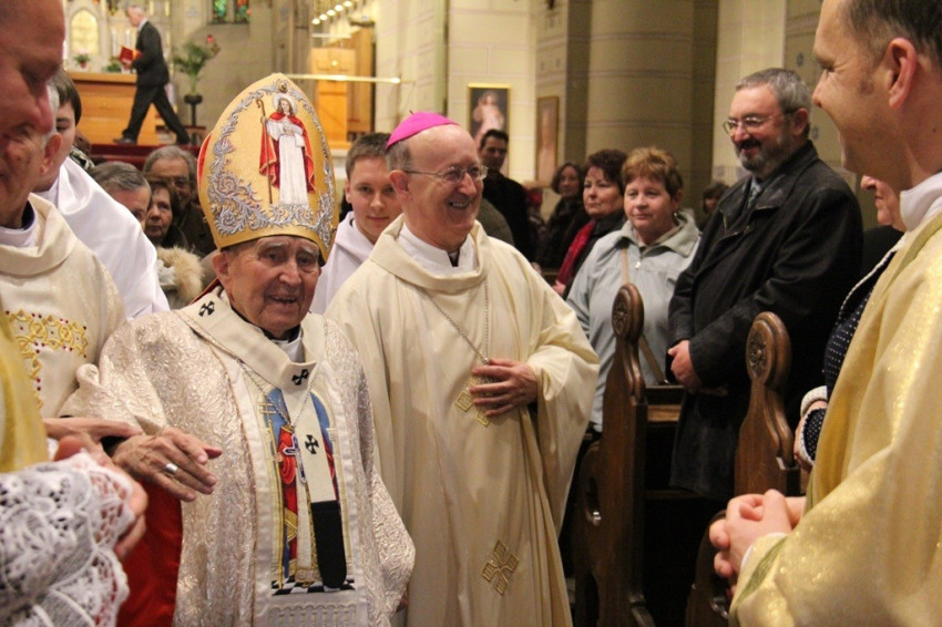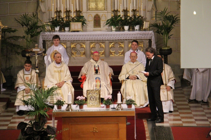 A szentmise végén Nagy Károly, a veszprémi Szent Mihály-bazilika plébánosa a pap testvérek nevében köszöntötte Szendi József nyugalmazott érseket.