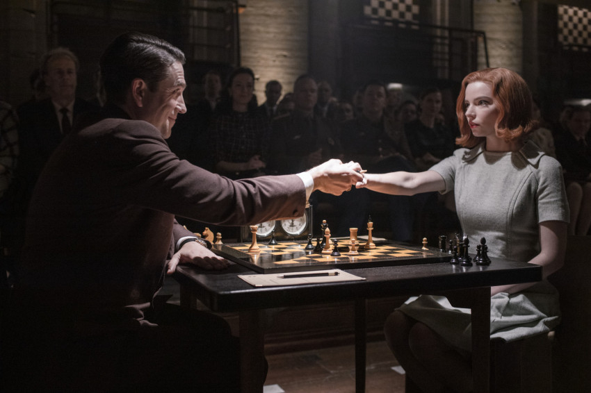 Egy autóversenyző vagy egy bokszoló életéről azért érdemes filmet forgatni, mert a bemutatott sport is látványos és izgalmas. Sakkozóról viszont rendkívül ritkán készül film, hiszen a sakkról sok mindent el lehet mondani, de azt, hogy lélegzetelállítóan akciódús volna, biztosan nem. A Walter Tevis regénye alapján készült sorozat mégis rabul ejti a nézőt. Még azok is érdeklődve követhetik Beth sakkpartijait, akik nem is értenek ehhez a játékhoz, mint például én. Mindez annak is köszönhető, hogy az alkotók – Scott Frank és Allan Scott – aprólékos pontossággal varázsolják elénk az ötvenes-hatvanas évek hangulatát. Bár Elisabeth Harmon kitalált személy, az akkori sakkélet ábrázolása hitelesnek tűnik. Az Egyesült Államokban annak idején a sakk nem tartozott a kiváltságos sportok közé, ellentétben például a Szovjetunióval, amely csakúgy ontotta magából a kivételes tehetségeket. (A sakkvilágbajnokságokat és -olimpiákat évtizedeken keresztül a szovjet/orosz versenyzők nyerték. Számunkra ezért különleges, hogy az 1952-től ötven éven át tartó egyeduralmukat – legalábbis ami a hivatalos rendezéseket illeti – Bobby Fischer világbajnoki címe mellett csak a magyar sakkolimpiai győzelem szakította meg.) Beth egyik versenyről a másikra jár, először az Egyesült Államokat, majd a világot is meghódítja. A legnagyobb, természetesen orosz ellenfél, Vaszilij Borgov (Marcin Dorociński) azonban, úgy tűnik, még neki is túl nagy falat…