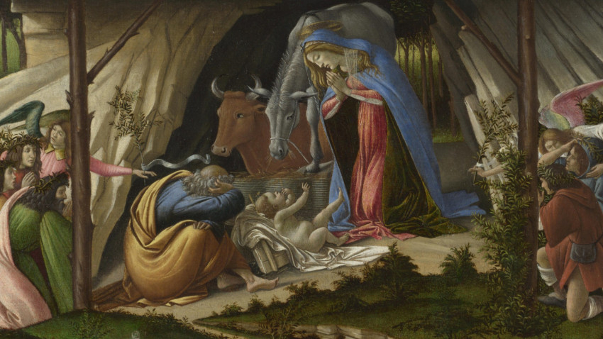 Botticelli Misztikus Krisztus születése című műve az 1500-as években készült. A festmény tetején található görög felirat az alkotás megszületésének évét rögzíti; emellett egészen konkrétan összekapcsolja témáját a Jelenések könyvének 11. fejezetével.