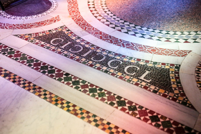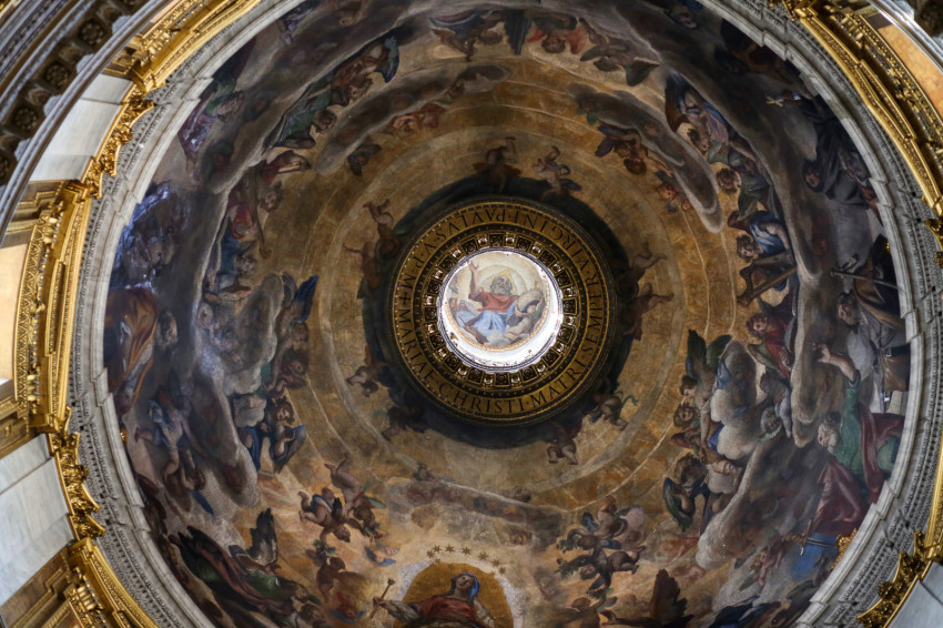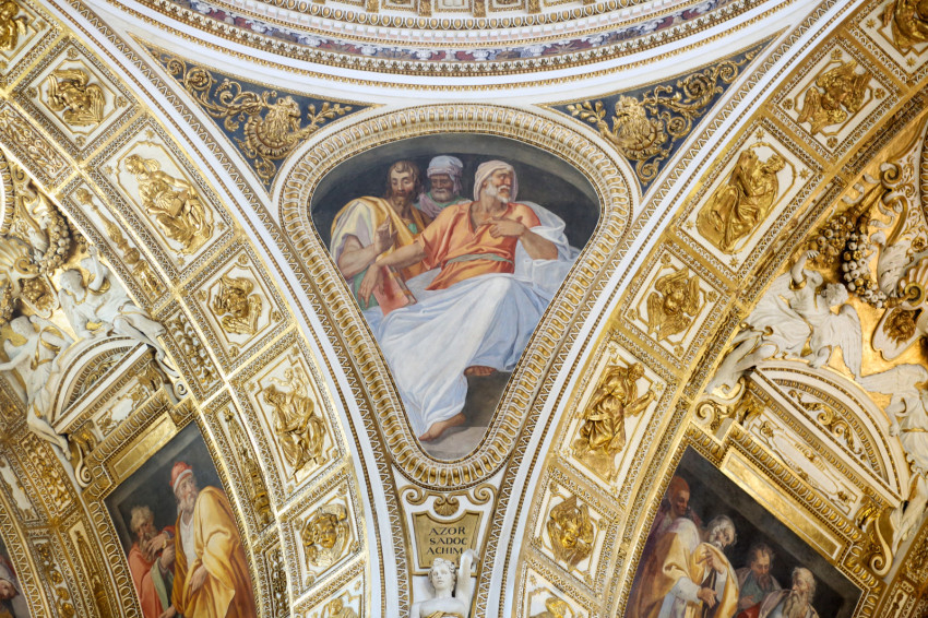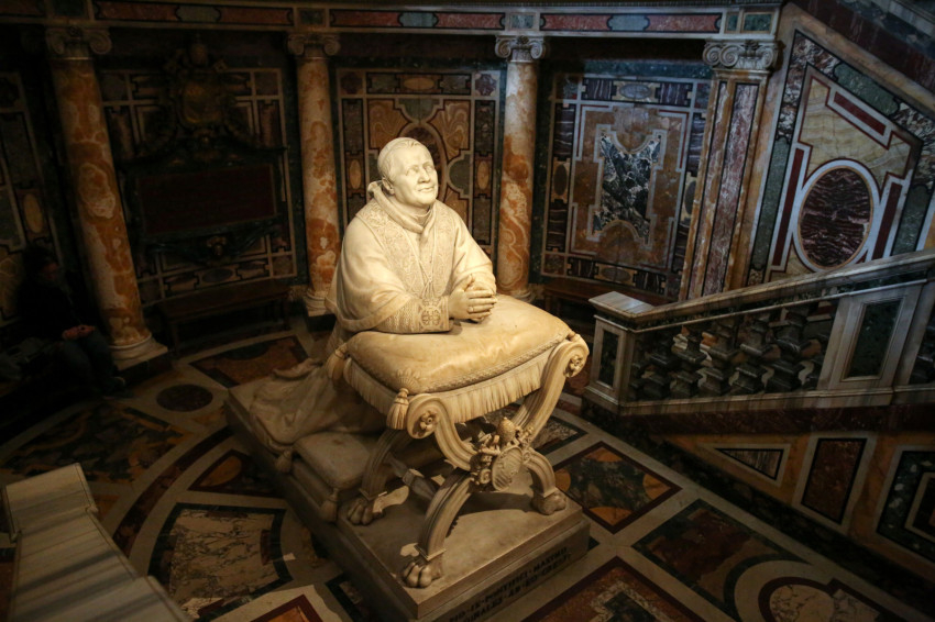 Ha belépünk a bazilikába, induljunk el jobbra! Az oldalra nyíló első nagyobb tér a keresztelőkápolna. A monumentális porfír keresztelőkút és aranyozott bronzdíszei (két angyal és Keresztelő Szent János) Gian Lorenzo Bernini alkotása. Ebből a térből nyílik a sekrestye. Két érdekességet találunk még itt. 867-ben II. Adorján ezen a helyen fogadta Szent Cirillt és Szent Metódot. Ekkor hagyta jóvá a pápa az ószláv nyelv liturgikus használatát. Erre ma több szláv nyelvű emléktábla emlékeztet.