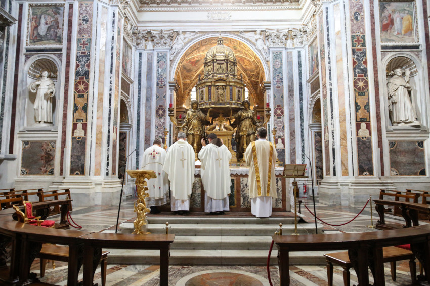A bazilikában a domonkos atyák látják el a gyóntatói feladatokat – szerencsénkre van közöttük magyar anyanyelvű is! Az imádság mellett tehát a szentgyónásért is betérhetünk ide, hogy zarándokként a megtérés szentségének kegyelmi ajándékaiban is részesülhessünk.