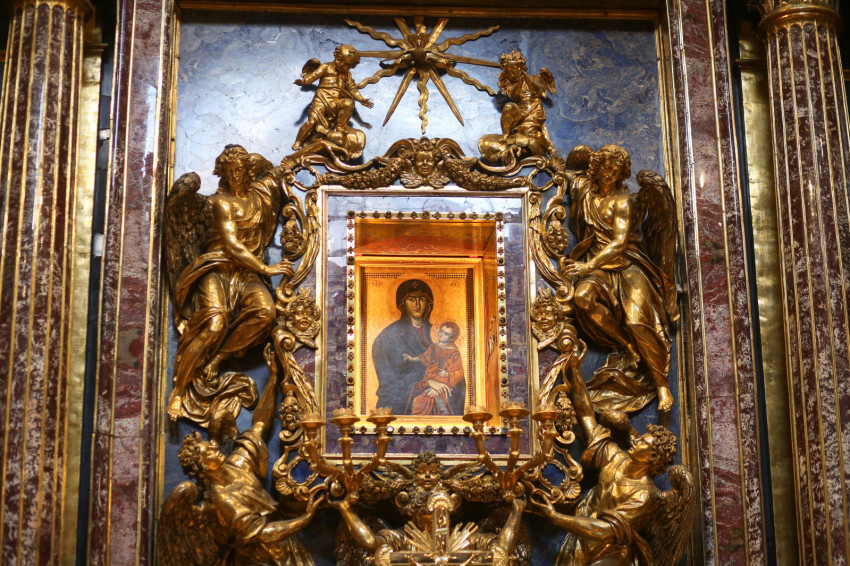 A cédrusfára készült táblaképet a kutatók bizánci stílust követő ikonnak tartják (kormeghatározása viták tárgya); Máriát és a Kisdedet ábrázolja. A népi emlékezet szerint már Nagy Szent Gergely ezzel a kegyképpel végzett kérő körmenetet a járvány elüléséért.