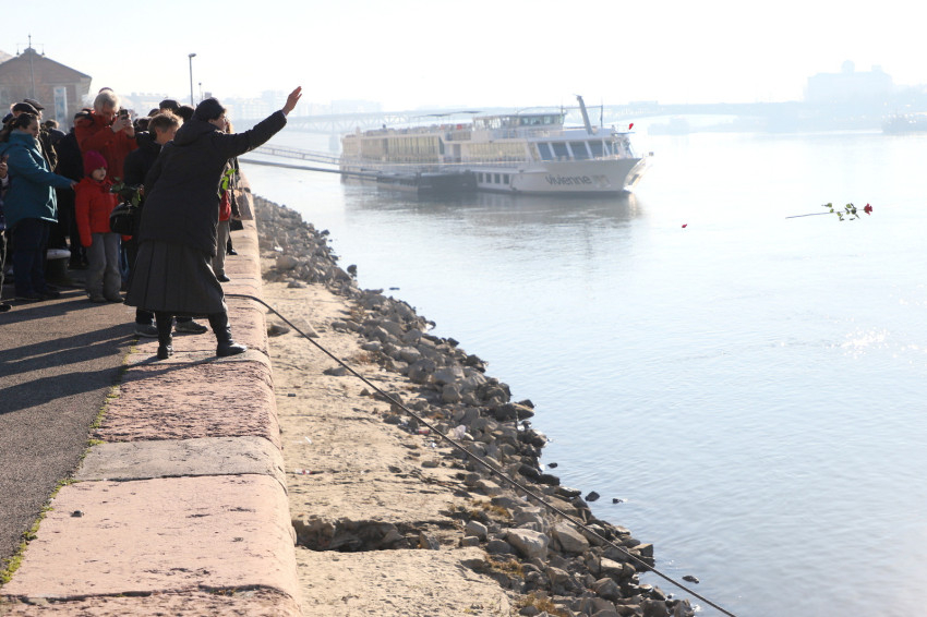 A megemlékezés végén koszorút helyeztek el az emléktáblánál, és három szociális testvér egy-egy szál vörös rózsát dobott a vértanúság emlékére a Dunába.