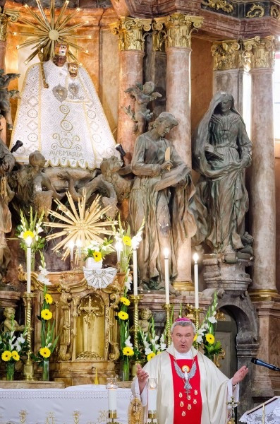 A szentmisén koncelebrált Németh Antal kópházi plébános és Mogyorósi Márk püspöki titkár. A főpásztor gradistyei horvát nyelven köszöntötte a jelenlévőket, kérve Istent, hogy a Boldogságos Szűz Mária közbenjárására áldja meg a közösséget, „amelyben horvátok és magyarok együtt élnek, és dicsőítik az Istent, a jóság és a béke forrását”.