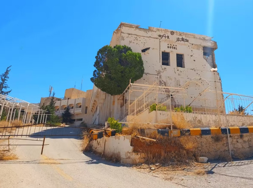 Maalúla magaslatára felgyalogolva saját szememmel láthattam az egykor szép zarándokszálloda maradványait, amelyet a terroristák kegyetlenül leromboltak. Sok lakóház is félig leégve maradt a városban, részben kihaltan hagyva ezt a területet.