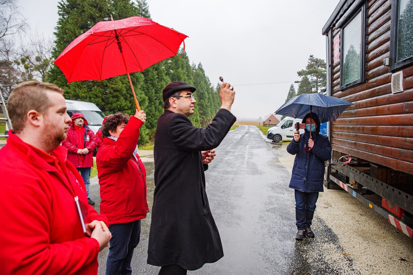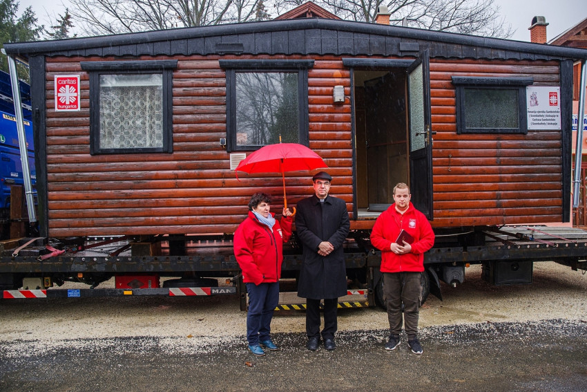 A 3,3 millió forint értékű mobilházat Borgátán vásárolta a karitász, indulásra kész állapotában február 9-én délelőtt áldotta meg Székely János megyéspüspök.