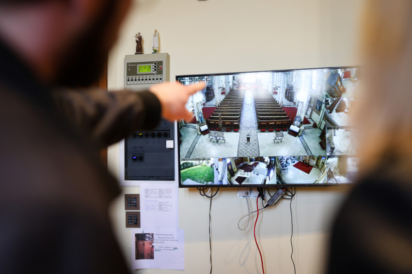 A Szent Margit-templom egész nap nyitva van, be lehet menni imádkozni, de csak a templom közepén húzódó kordonig, amely be van riasztva. A sekrestyéből egy képernyőn keresztül követhetők a templomtérben zajló események, melyeket több kamera rögzít. Tulajdonképpen ez biztonsági őri feladat. Vannak önkéntes templomőrök is, főleg idősebbek, időnként ők figyelik a kamerát. Zsolt ilyenkor el tud menni beszerezni, amire szükség van, vagy dolgozhat a templomtérben, a karzaton, a pinceteremben. A sekrestyések felelnek a templomban lévő tárgyakért és az Oltáriszentség védelméért.