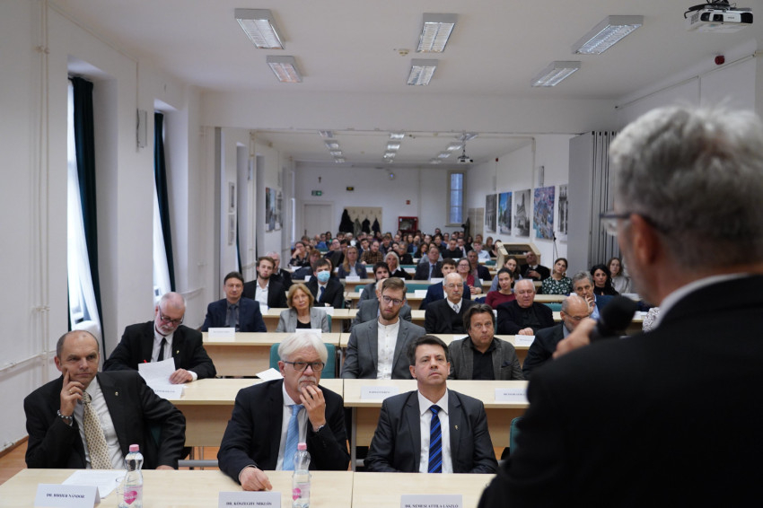 Az eseményt Birher Nándor dékán köszöntője nyitotta meg, aki beszédében hangsúlyozta, hogy a 2025-ös felvételi eredmények tanúsága szerint a Bölcsészet- és Társadalomtudományi Kar iránt továbbra is töretlen az érdeklődés: közel 17 ezer jelentkező közül több mint háromezer új hallgató kezdhette meg tanulmányait az őszi félévben. Kiemelte, hogy az egyetem a nemzetközi elismerések terén is előrelépett, hiszen idén a Times Higher Education rangsorán is helyet kapott.