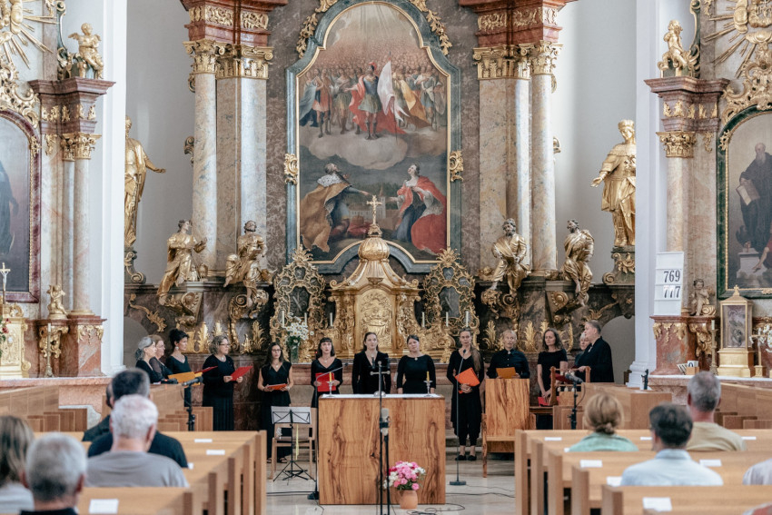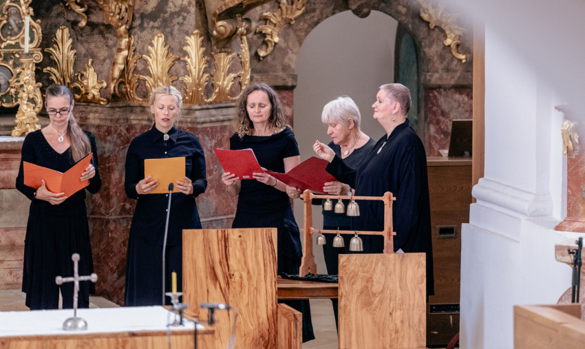 Július 2-án, Sarlós Boldogasszony ünnepén (Visitatio Beatae Mariae Virginis) Maria Jonas vezetésével a már megtanult egyházművek előadásával járult hozzá a kórus a monostori templomban tartott ünnepi szertartáshoz. Július 5-én 18 órakor pedig egy ingyenes koncerttel, illetve zenei meditációval koronázták meg a Bakonyban töltött öt napot a Szent Mauríciusz-templomban. Az előadáson olyan Hildegard-művek csendültek fel, mint az O virtus Sapientiae (antifóna, R 466), az O eterne Deus (antifóna a Rupertsbergi Riesenkódexből), vagy a Dendermonde-kódex Hildegard-művei között fennmaradt Caritas habundat kezdetű antifóna.