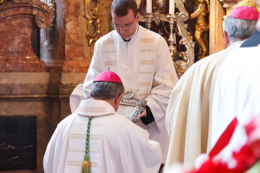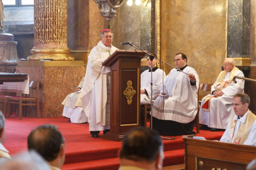 Csodálatosan szép ez a templom. Attól szép, hogy a díszeken kívül elsősorban a Mária-tisztelő zarándokok imádsága járja át – mondta szentbeszéde elején a győri bazilikáról Snell György, majd a 318 évvel ezelőtti könnyezés eseményét felidézve kiemelte, a csoda nemcsak a székesegyházat, hanem szélesebb értelemben a várost is kegyhellyé tette.