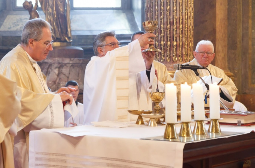 A szentmise áldozati részének elején a jelen lévő papság a Szentatya buzdítása nyomán közösen megújította papi fogadalmát, a liturgia végén pedig a hívekkel együtt imádkoztak a győri Könnyező Szűzanya közbenjárásáért.