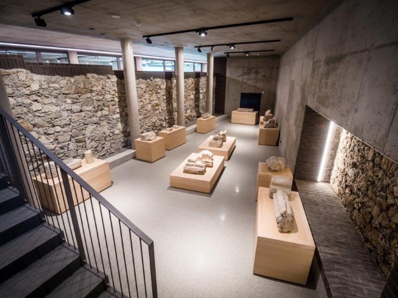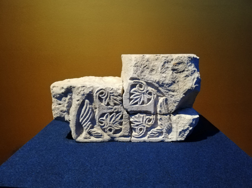 Székesfehérváron az első szent hely az a bazilika, amelyet Szent István király alapított, ahová őt halála után végakarata szerint eltemették – és ennek a bazilikának kis darabja ez, amit itt kiállítottak. Ez a motívum egy élő kereszt, amely már régóta ismert volt: ez a kőtöredék a püspöki palota kertjének falában volt beépítve már vagy kétszáz éve. Ezt a falat a barokk korban egyszerű eszközökkel építették, a kor szokása szerint felhasználtak középkori kőmaradványokat is. A mostani építkezéshez ezt a falat le kellett bontani, amit úgy engedélyezett a hatóság, hogy csak óvatos bontással, szakfelügyelet mellett lehetett elvégezni.