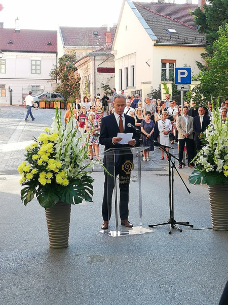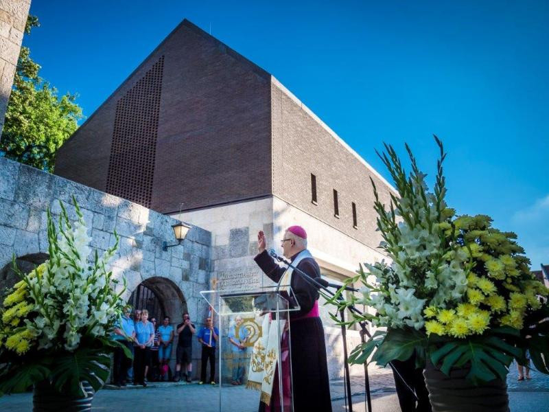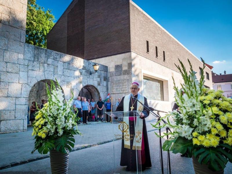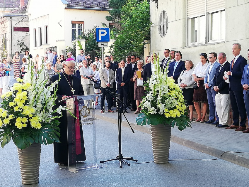 A megnyitó beszédek után – melyek során többek között Cser-Palkovics András, Székesfehérvár polgármestere is elmondta gondolatait a projekt kapcsán – Spányi Antal megyéspüspök megáldotta a látogatóközpontot és a megjelenteket.