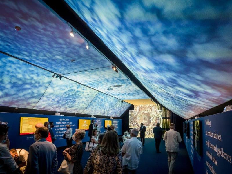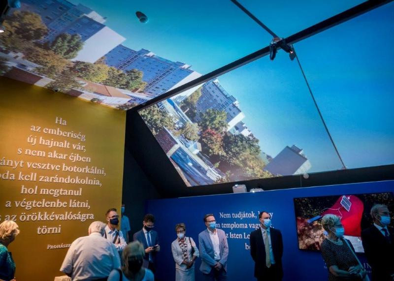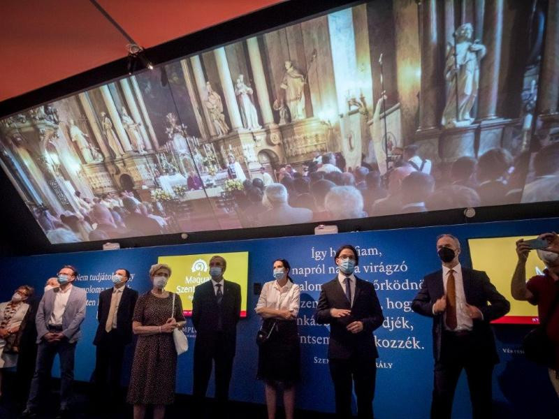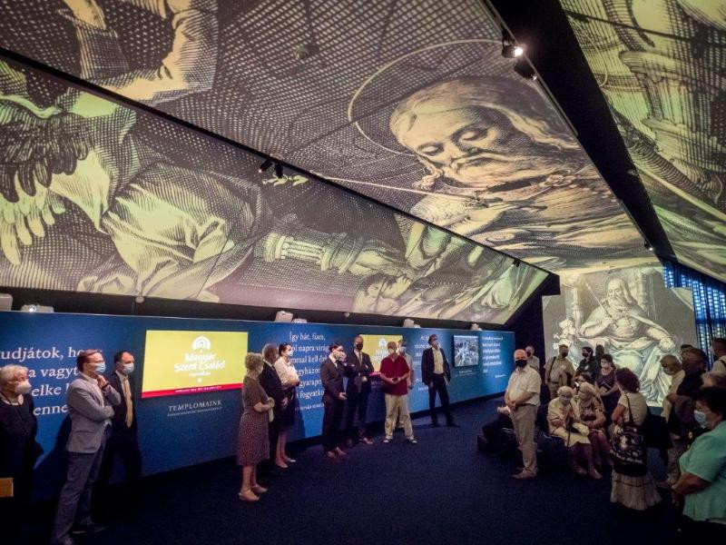 A június 26-i megnyitó ünnepségen a bevezetőben megtudhattuk, hogy új zarándokút jött létre a Székesfehérvári Egyházmegyében, hét állomással Vértessomló, Bodajk és Székesfehérvár között. A Székesfehérvári Egyházmegyei Látogatóközpont és Kiállítótér új épülete a magyar állam és az Európai Unió támogatásával, A Magyar Szent Család nyomában tematikus zarándokút fejlesztése a Székesfehérvári Egyházmegyében című GINOP projekt keretében készült, Gutowski Robert tervei alapján.