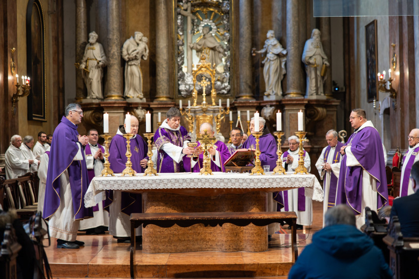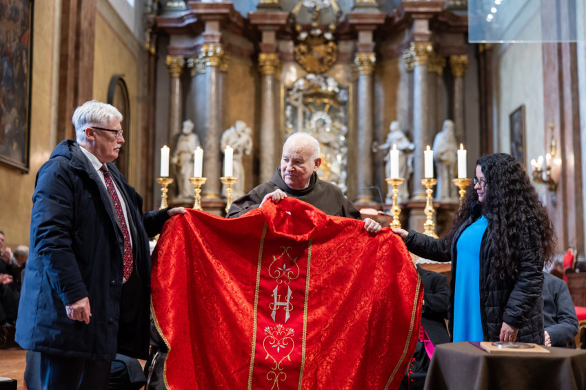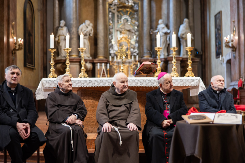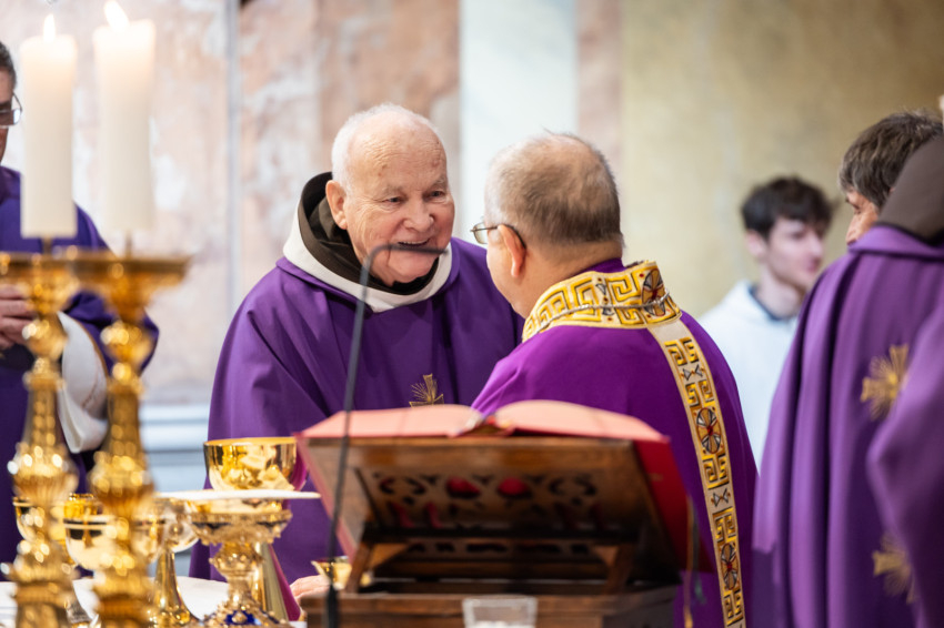 Az ünnepi szentmise főcelebránsa Bábel Balázs kalocsa-kecskeméti érsek, a tavalyi év Hit Pajzsa díjának kitüntetettje volt. Vele koncelebrált az ünnepelt mellett többek között Süllei László esztergom-budapesti általános érseki helynök, a Mátyás-templom plébánosa, Barsi Balázs ferences szerzetes, filozófus, teológus, Kálmán Peregrin OFM templomigazgató, ferences papok, szerzetesek.
