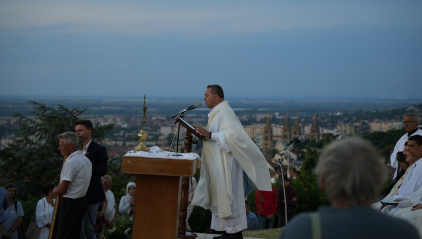 A szentmise után a hívek, a zarándokok és a papok a Boldogságos Szűzanya tiszteletére Egyházunkért, a Pécsi Egyházmegyéért, a templom közösségéért és Pécs városáért imádkozva körmenetetben kísérték a Havas Boldogasszony-kegykép másolatát a templom melletti havihegyi sétányon.