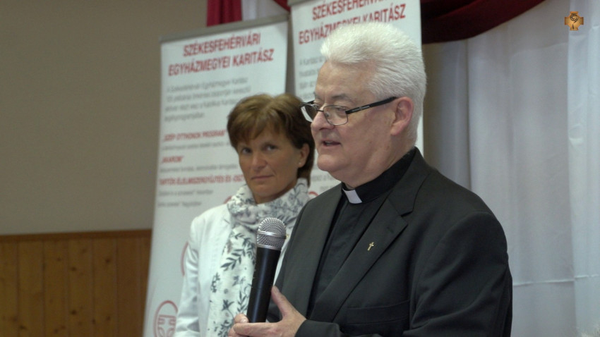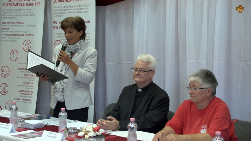 A kőszárhegyi karitászcsoport vezetője, Borjánné Nyúl Katalin köszöntötte a jelenlevőket, majd visszatekintett a helyi önkéntescsoport alapítására és 15 éves munkájára. Elmondta, csoportjuk hogyan kapcsolódott be a Katolikus Karitász pályázati programjaiba, melynek eredményeként több családnak is segíthettek a Szép Otthon Program vagy a Kandalló Program keretében. Mindezt az adományosztások, a gyermek- és ifjúsági programok és az idősek látogatása mellett tették.
