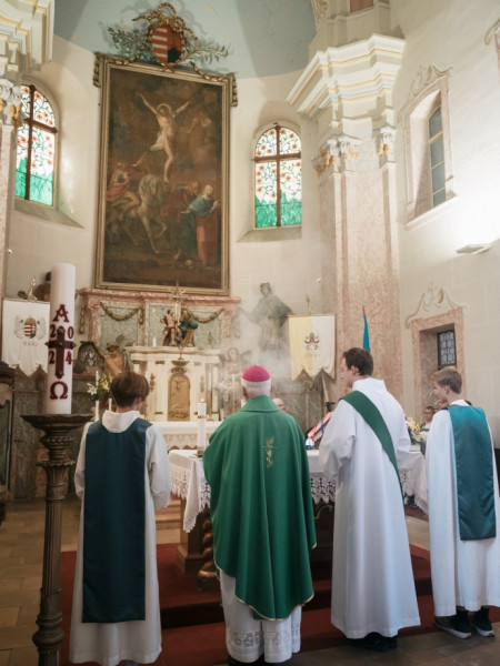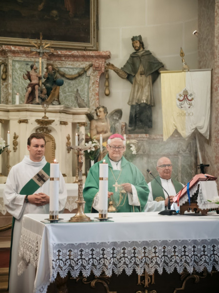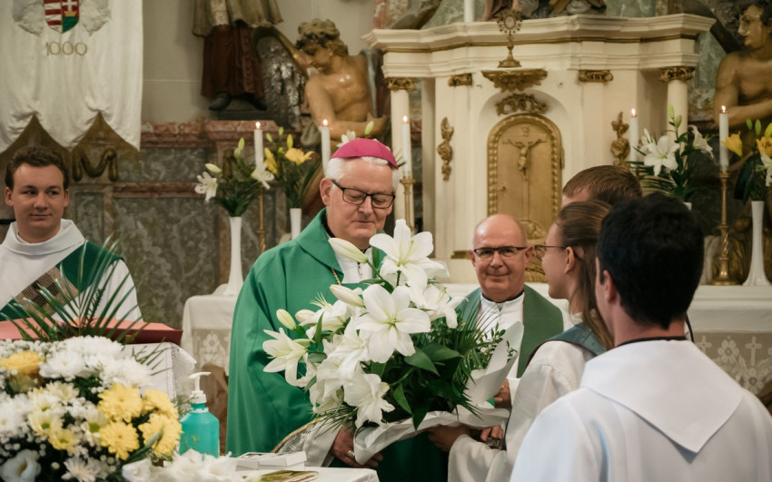 Spányi Antal püspök köszönetet mondott azért, hogy összefogással és a kormány támogatásával megújulhatott az épület, egy megújulni tudó közösség temploma. Azt kérte a helyi hívektől, hogy legyenek Krisztus egyházának hűséges, egyre állhatatosabb és következetesebb tanúi. Hangsúlyozta, hogy minden közösségnek szüksége van arra, hogy figyeljen saját értékeire. A templom a hagyományos katolikus, keresztény kultúráról is tanúskodik, és a tetején a kereszt Krisztusra mutat. Azt hirdeti, hogy az ember szívét és lelkét az Ég felé kell hogy emelje, hogy velünk van az Isten, közel van hozzánk az élet mindenfajta küzdelmében is.