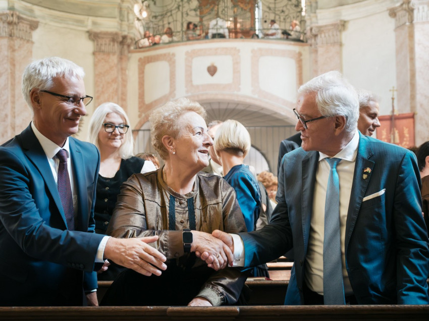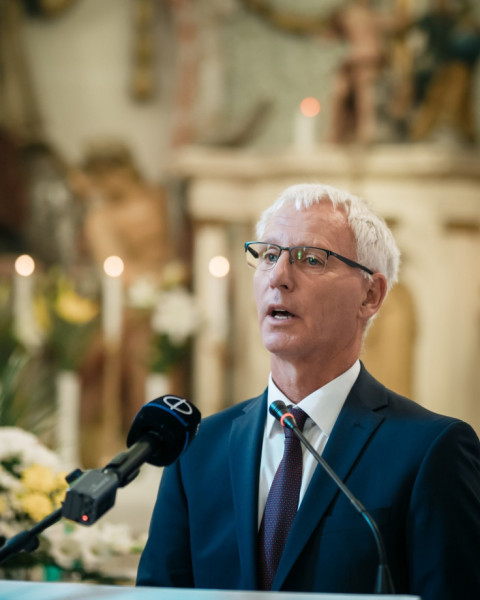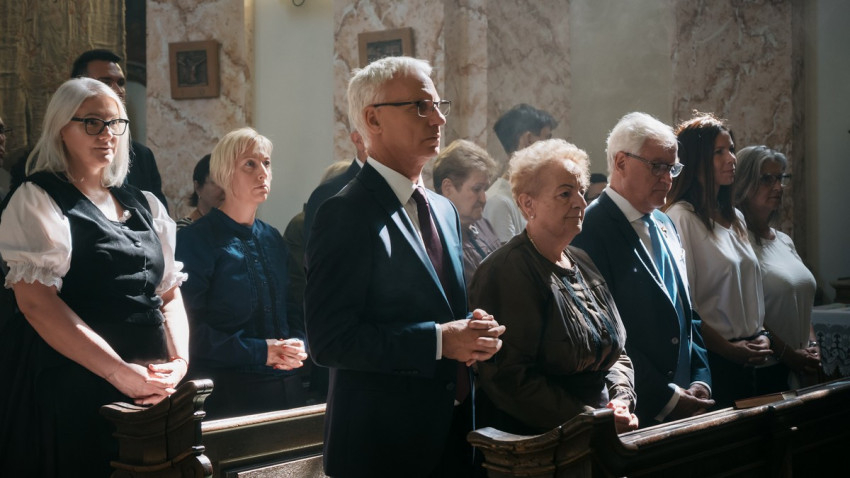 A szentmise végén köszöntőt mondott Soltész Miklós, a miniszterelnökség egyházi és nemzetiségi kapcsolatokért felelős államtitkára; Ritter Imre német nemzetiségi országgyűlési képviselő és a felújítást koordináló Tázer Pálné, a Piliscsabai Német Nemzetiségi Önkormányzat elnöke.
