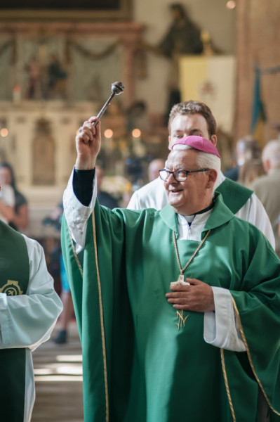 A hívek nevében Szilágyi Szabolcs plébános köszöntötte a főpásztort. Hangsúlyozta: nagy öröm, hogy megújulhatott a templom Piliscsabán, ahol számos közösség vesz részt a plébánia életében. A városban négy nemzetiség: magyarok, németek, szlovákok és romák élnek együtt, működik a plébánián cserkészet, regnumi közösség, házasközösségek és lelkiségi mozgalmak közösségei is, sőt nyugdíjasok teaháza is van. Mindenkinek próbálnak lehetőséget biztosítani arra, hogy megtalálja a maga közegét, hogy együtt tudjanak imádkozni és dicsőíteni Istent a templomukban.
