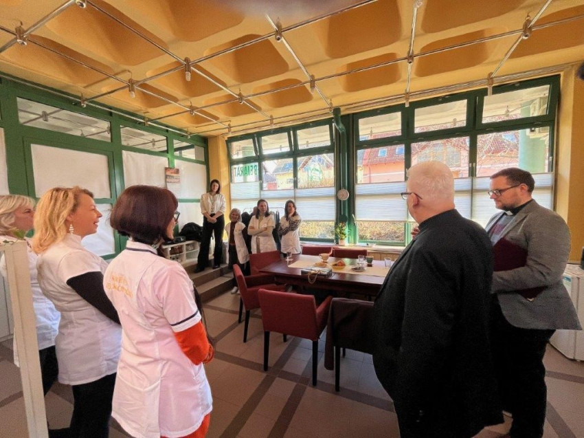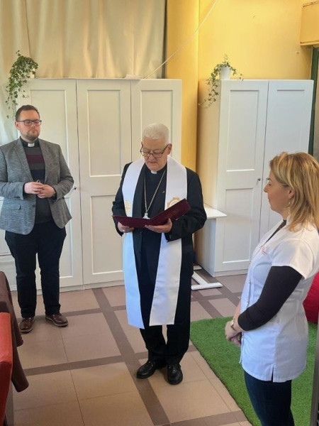 A főpásztor látogatást tett a lelkigondozók új irodájában és egy, a felebarátot felkaroló, hordozó művészi grafikával ajándékozta meg az ott dolgozókat. Megáldotta a helyiséget, és imádkozott, hogy akik ott segítséget kérnek, megtapasztalják a krisztusi szeretet erejét, amely nagyban elősegíti a betegek testi-lelki gyógyulását.