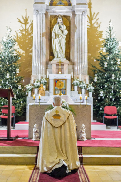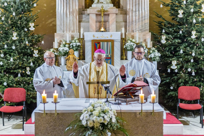 A szentmisében a plébános vezetésével elimádkozták a Prohászka Imaszövetség imáját, majd a főpásztor az újévi ünnepélyes áldással megáldotta a népet.