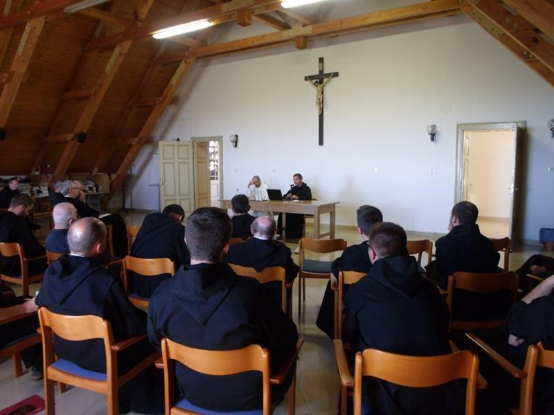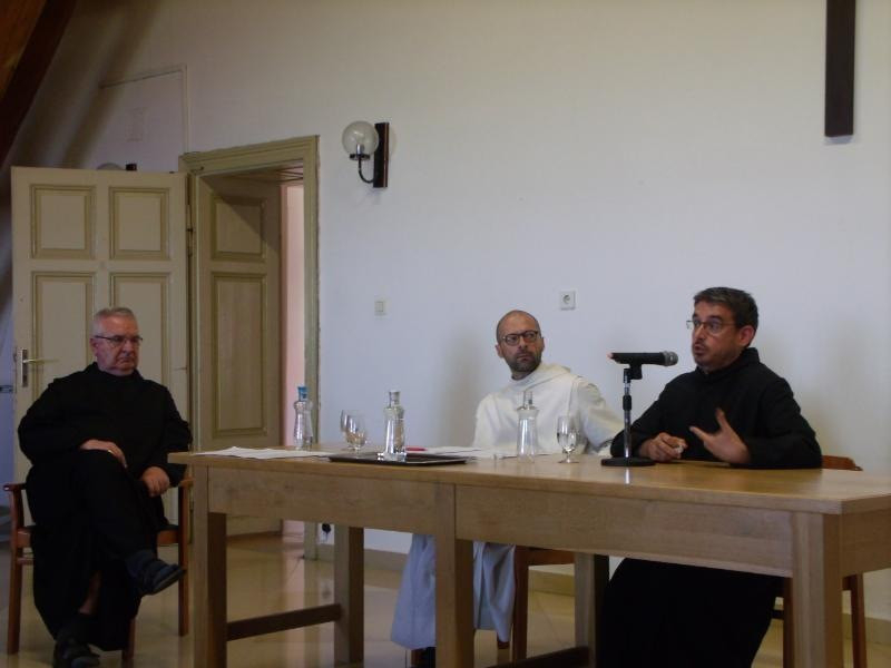 Luigi Gioia olasz bencés, a két nap előadója a szerzetesélet zsinat utáni megújítása és a monasztikus élet bölcsességi jellege köré szervezte előadásait. Elméleti alapvetésében a bölcsesség szentírási hagyománya alapján rámutatott arra a finom munkára, ahogyan a II. vatikáni zsinat dokumentumai igyekeznek újrafogalmazni az egyház misztériumát, vagyis azt a kapcsolatot, ami Isten népének identitását Istenhez kapcsolva határozza meg. Hangsúlyozta, hogy van három alapérték, aminek a zsinat szerint az egyház világban való jelenlétét és cselekvését a mai kor posztmodern társadalmi közegében meg kellene határoznia: egyfajta szolidaritás, mely inkább öntudatra ébredés és nem leereszkedés; egyéni és közösségi, egyházi identitásunk történelmi dimenziójának teljes tudatosítása; továbbá nagylelkű nyitottság a párbeszédre és mindannak integrálására, ami emberi. Előadásaiban később gyakorlatias példákon keresztül mutatott rá arra, hogy a monasztikus szerzetesi élet a maga gyakorlatias, bölcsességi szemlélete által, a közösségi élet megélésére szóló küldetésében, a hitelesen keresztény vezetési stílus gyakorlásában ezeknek az értékeknek hiteles hordozójává válhat.