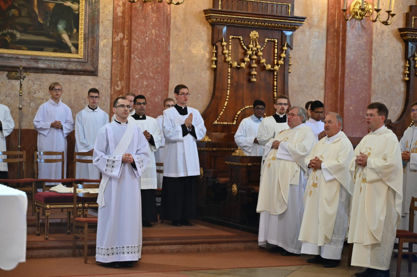 Székely János az újmisés szentelési képének idézetét olvasta fel: A Te arcodat keresem Uram. Hozzátette: ahogy az ő arcát nézed alakuljon ki benned is a Krisztus arc, légy hozzá hasonló és őt fedezd fel a rádbízottakban is. Legyél az ő képmása. Járd a békességszerzők útját, akik nem mondanak rosszat senkiről, akik ismerik azt a szeretetet ami fátylat borít sok bűnre. Bátran vállald az üldözöttek, a Krisztussal együtt megvetettek útját.