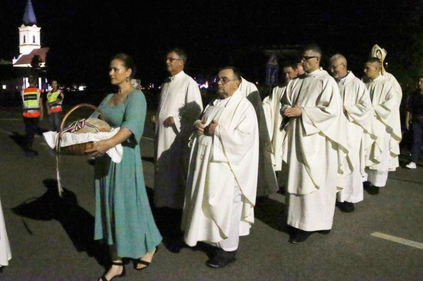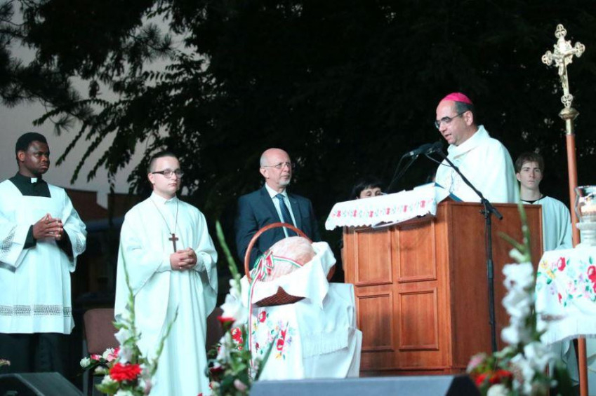 Ezt követően Székely János szombathelyi megyéspüspök celebrált szabadtéri szentmisét, amelyen megáldották Szent István kenyerét.